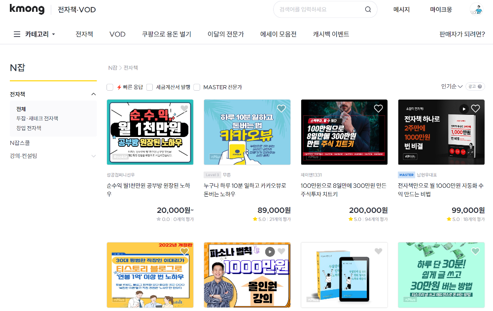 하지만 수가 적은 만큼 전자책을 등록하면 경쟁력이 높아진다는 장점도 있습니다. 전자책 등록 후에 강좌를 추가로 런칭하는 형태로 생각해 볼 수 있습니다.
