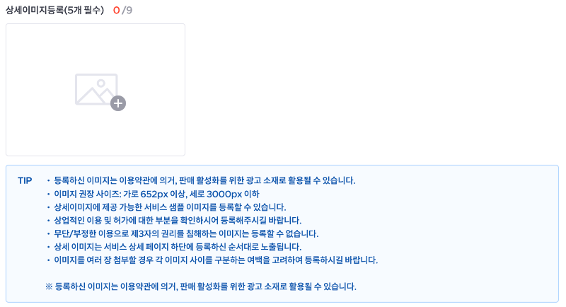 - 최소 5장 이상의 상세 이미지 자료를 등록해야 합니다.