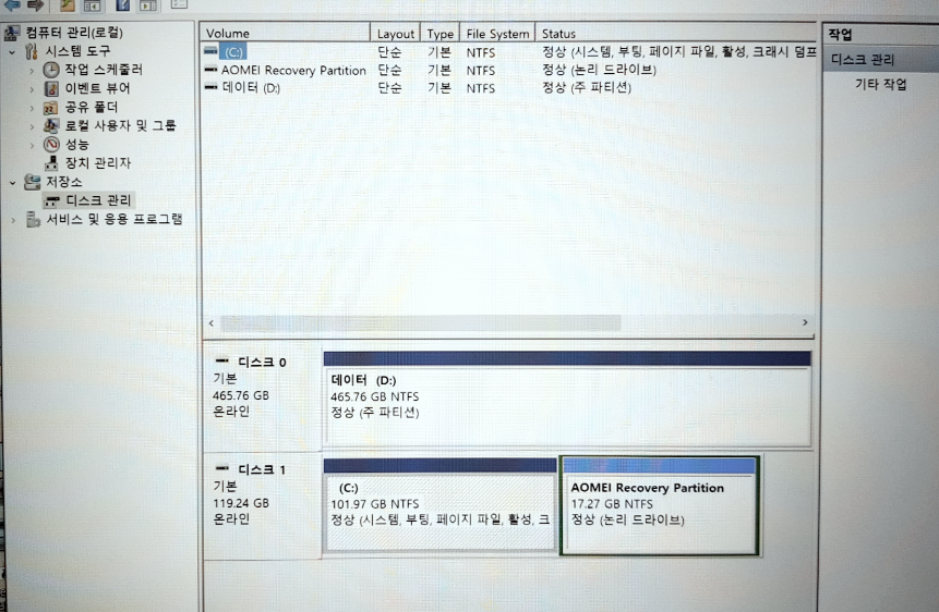 그제야 하드가 잘못된 걸 인지한 듯합니다.